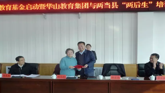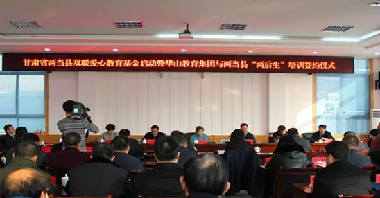 2015年12月18日,兩當(dāng)縣委組織舉辦甘肅省兩當(dāng)縣雙聯(lián)愛(ài)心教育基金會(huì)啟動(dòng)暨華山教育集團(tuán)與兩當(dāng)縣"兩后生"培訓(xùn)簽約儀式。
