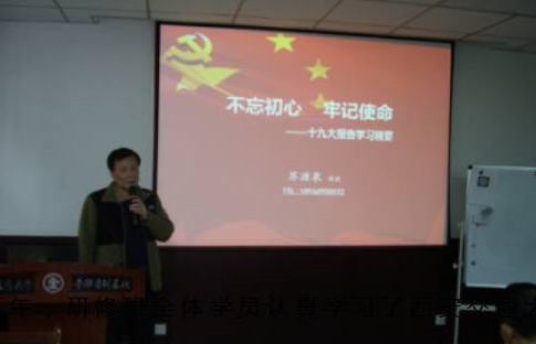 23日下午,研修班全體學(xué)員認(rèn)真學(xué)習(xí)了西安交通大學(xué)CEO\EMBA公務(wù)員培訓(xùn)課程主講教授、陜西省行政學(xué)院教授、中共陜西省委講師團(tuán)特聘教授、西北大學(xué)國(guó)際商學(xué)院兼職教授蘇源泉講授的題為《不忘初心牢記使命——十九大報(bào)告學(xué)習(xí)精要》的課程。