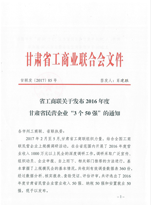 據(jù)了解,2017年2月至5月,甘肅省工商聯(lián)組織力量,結(jié)合全國工商聯(lián)民營企業(yè)上規(guī)模調(diào)研活動(dòng),在全省范圍內(nèi)開展了2016年度營業(yè)收入1000萬元以上民企的深度調(diào)研工作。調(diào)研采取廣泛宣傳、組織動(dòng)員、企業(yè)申報(bào)、自上而下、相關(guān)部門推薦的方法進(jìn)行,基本掌握了上規(guī)模民企的基本情況,共收到有效調(diào)查數(shù)據(jù)表360份,經(jīng)過數(shù)據(jù)分析、核實(shí)報(bào)表、查驗(yàn)憑證、評估評審,共評選出了2016年度甘肅省民營企業(yè)營業(yè)收入50強(qiáng)、納稅50強(qiáng)和安置就業(yè)50強(qiáng)。