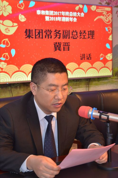 非常感謝大家在過(guò)去的一年里對(duì)泰和集團(tuán)的支持與信任,感謝和我們一路走來(lái)的每一位員工,是大家的努力和堅(jiān)持,讓泰和集團(tuán)取得今天的成就,我代表集團(tuán)公司向在座的全體同仁們致以最崇高的敬意和衷心的感謝!