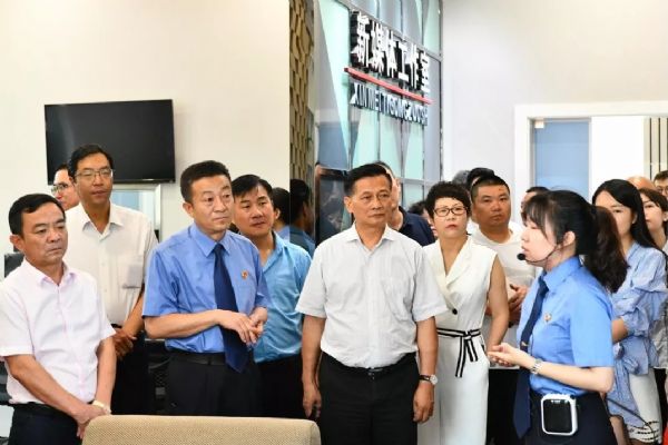 民營企業(yè)家們在市院黨組書記、檢察長張學軍和黨組成員、副檢察長蒲軍的陪同下,參觀了市院12309檢察服務中心、案管大廳、新媒體工作室、公益訴訟調查指揮中心和黨建活動中心等檢察辦公辦案場所,現場聽取工作人員演示講解,近距離感受檢察工作流程。代表嘉賓不時詢問檢察機關的各項工作職能,張學軍檢察長用平實易懂的語言詳細進行了解答。